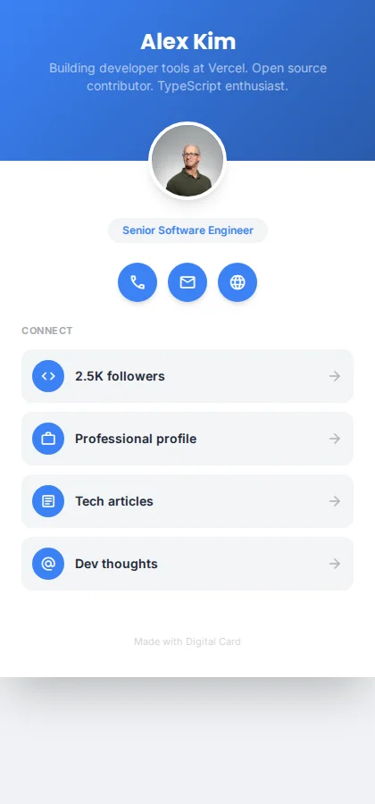 Fresh layout with a contemporary feel. Great for tech and creative professionals.